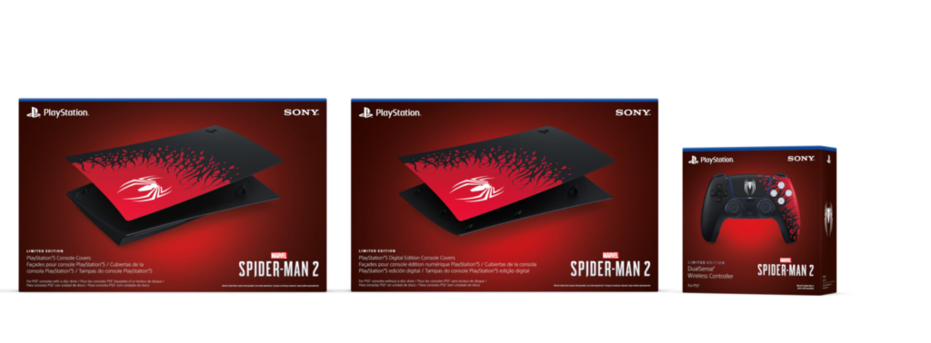 Os proprietários do console PS5 têm a opção de adquirir separadamente as Capas do Console PS5 do Spider-Man, tanto na versão padrão quanto na versão digital, bem como o Controle Sem Fio DualSense.