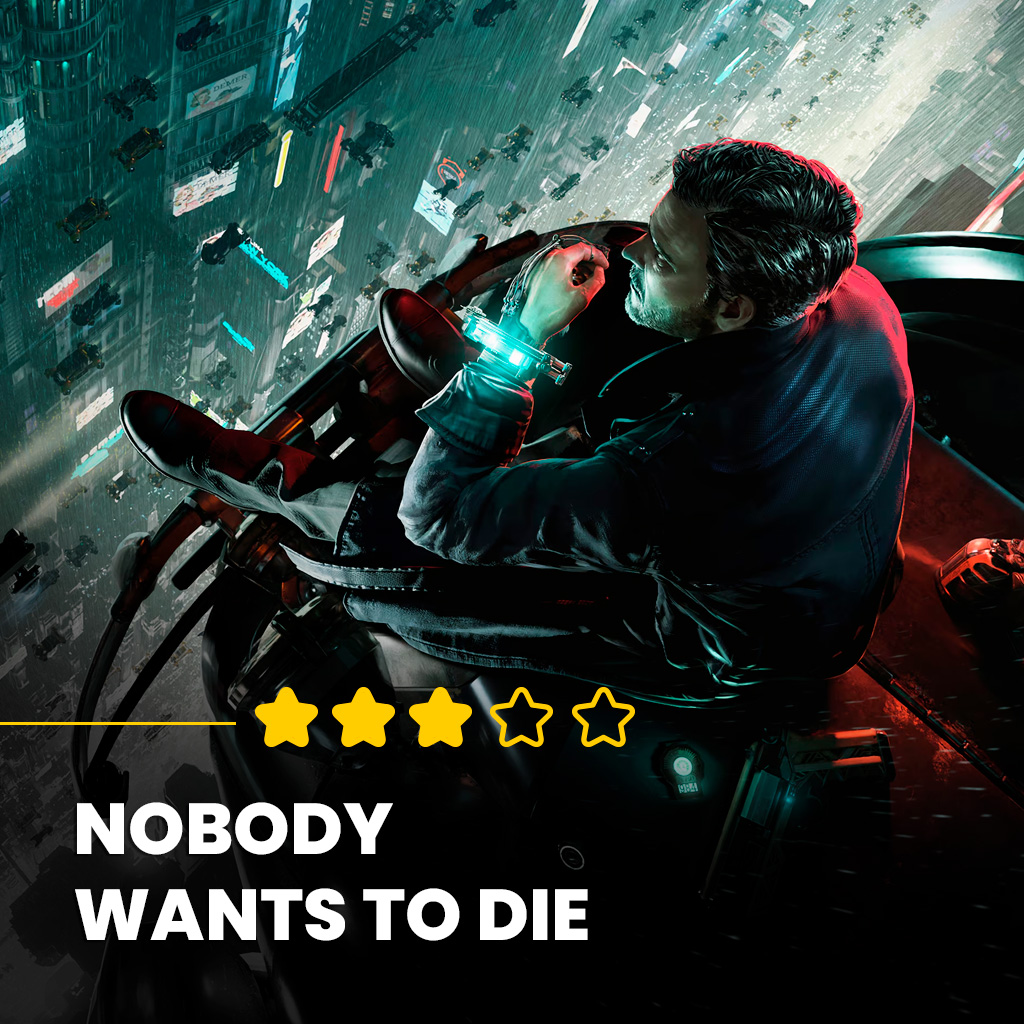 Nobody Wants to Die apresenta uma premissa interessante e uma história envolvente ambientada em um futuro distópico. A narrativa é o ponto forte do jogo, com uma trama intrigante e escolhas de diálogos que podem alterar o curso dos acontecimentos, embora o final seja determinado por uma única decisão.