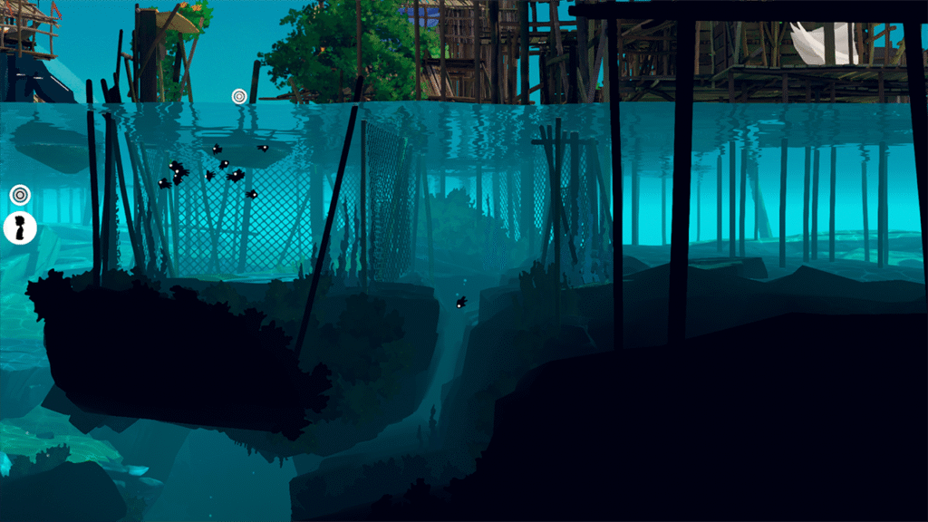 A Lana agora nada bastante, e o jogo faz o mergulho ter peso. Você ouve a respiração dela ficando forte lá embaixo, sente a urgência crescer, e mesmo sem HUD berrando na sua cara, dá pra entender: você precisa subir pra respirar, ou encontrar bolhas de ar no fundo pra estender a exploração. Isso abre espaço pra puzzles subaquáticos bem legais, especialmente quando o jogo mistura furtividade e fauna.