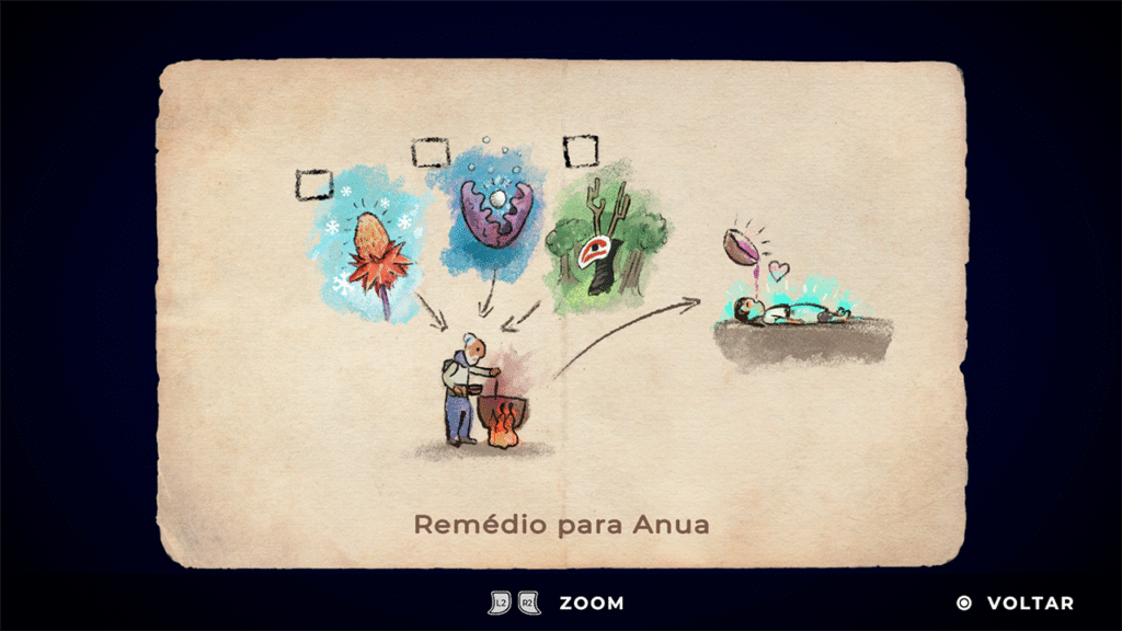 Coube então à protagonista uma missão paralela e urgente: encontrar três itens espalhados pelo mundo que juntos poderão curar Anua. É essa busca que move a aventura.